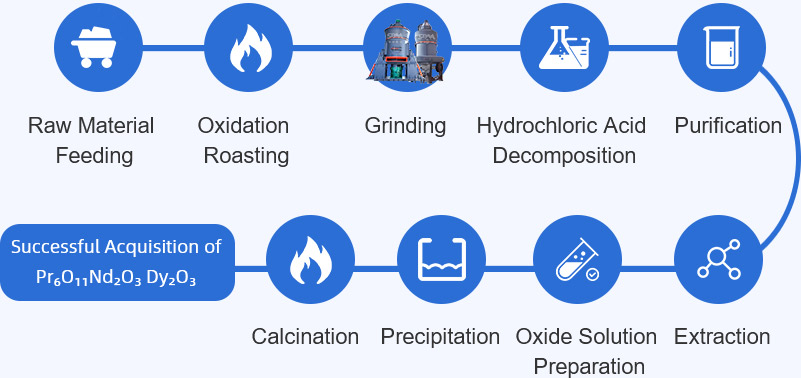 Pyrometallurgical processes, such as selective chlorination, liquid alloy process and slag-metal smelting separation process, recover rare earths via high-temperature separation.